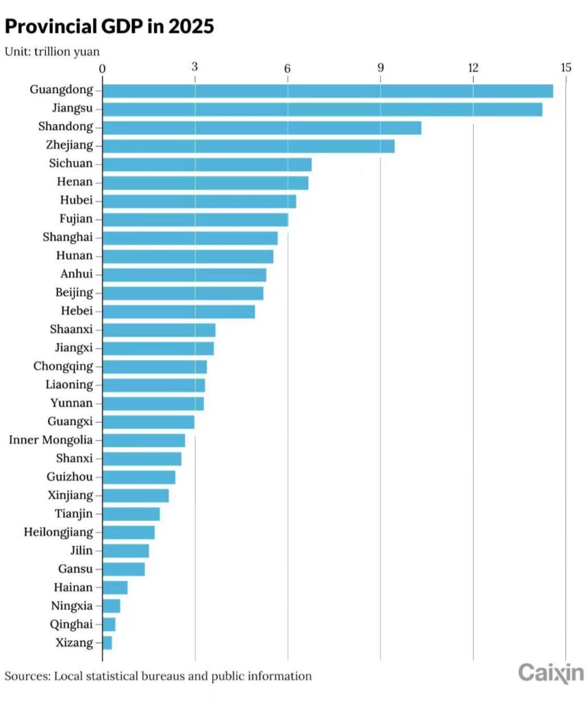Guangdong (~RMB 14.6 trillion, 2025 est.) – comparable to Germany