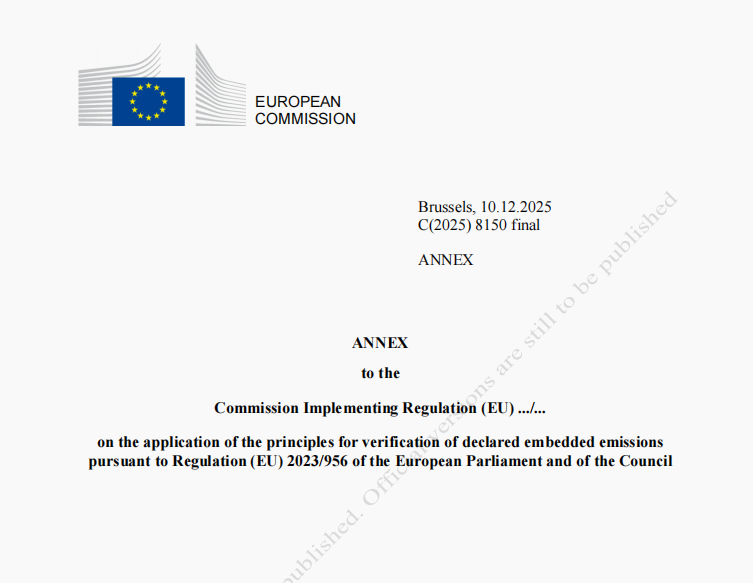 自 2026 年 1 月 1 日起,欧盟碳边境调节机制(Carbon Border Adjustment Mechanism,简称 CBAM)将从过渡期申报阶段正式迈入全面实施阶段,这一转变标志着与欧盟进行贸易往来的全球供应链迎来关键拐点。CBAM 不再只是试点性质的排放申报工具,而是进入具有真实财务责任的全面运行阶段,进口产品所含的隐含碳排放将直接对应具体的碳成本。